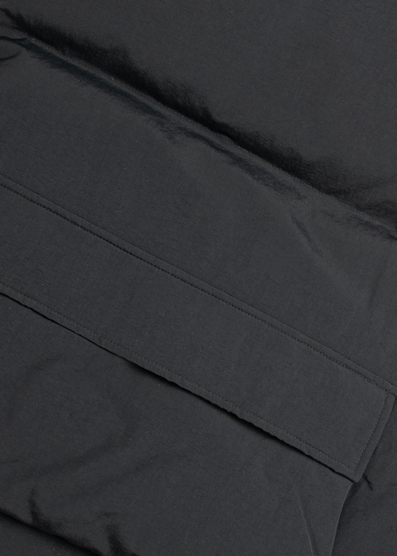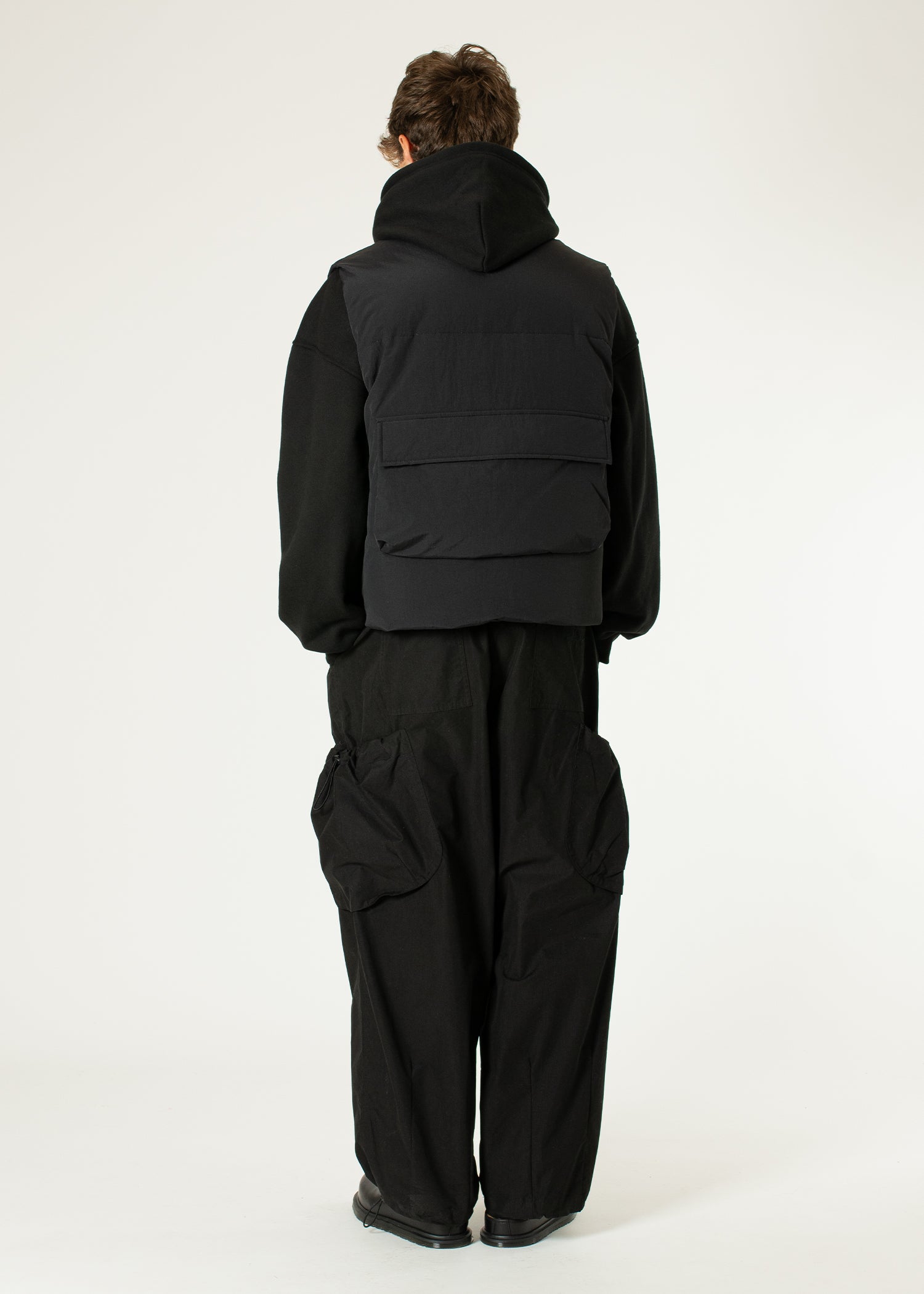 This black puffer vest has an oversized boxy fit ideal for layering and cold winters. Two-way YKK zipper. Two front pockets with fleece lining. Big back pocket for everyday essentials. Embroidered logo at back. It comes in two sizes.